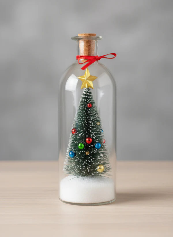 🎄 Beautiful Snowy Bottle Design Handcrafted with festive detail a charming addition to any Christmas décor.